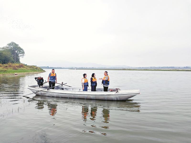 安徽省池州市纪检监察机关聚焦升金湖生态环境保护常态化开展监督,压实职能部门监管责任,筑牢生态环境保护屏障。图为10月13日,该市东至县纪检监察干部与管护队员一起开展巡湖,了解升金湖生态环保问题整改情况。张冰 摄