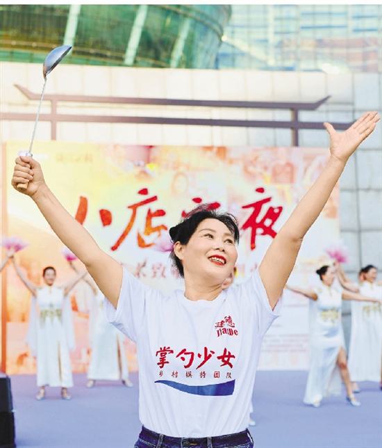 “队员们大多是家里掌勺的‘大厨’,我们就给自己取了这个名字。”下台后,“掌勺少女”村模队队长兰丽琴告诉记者,这支草根模特队登上过不少舞台,但参加“小店之夜”演出对他们来说无疑是一次更特别的体验。