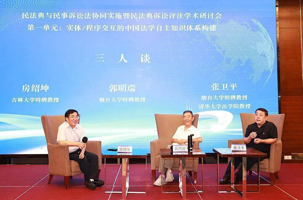 会上,我国民法学和民事诉讼法学研究领域著名学者郭明瑞教授、张卫平教授、房绍坤教授就“实体与程序交互的中国法学自主知识体系构建”话题,展开三人学术对谈。20位发言人分“民法典与民事诉讼法的协同实施”和“民法典诉讼评注”等七个学术单元进行主题报告,23位学者参与报告评议和单元总结。